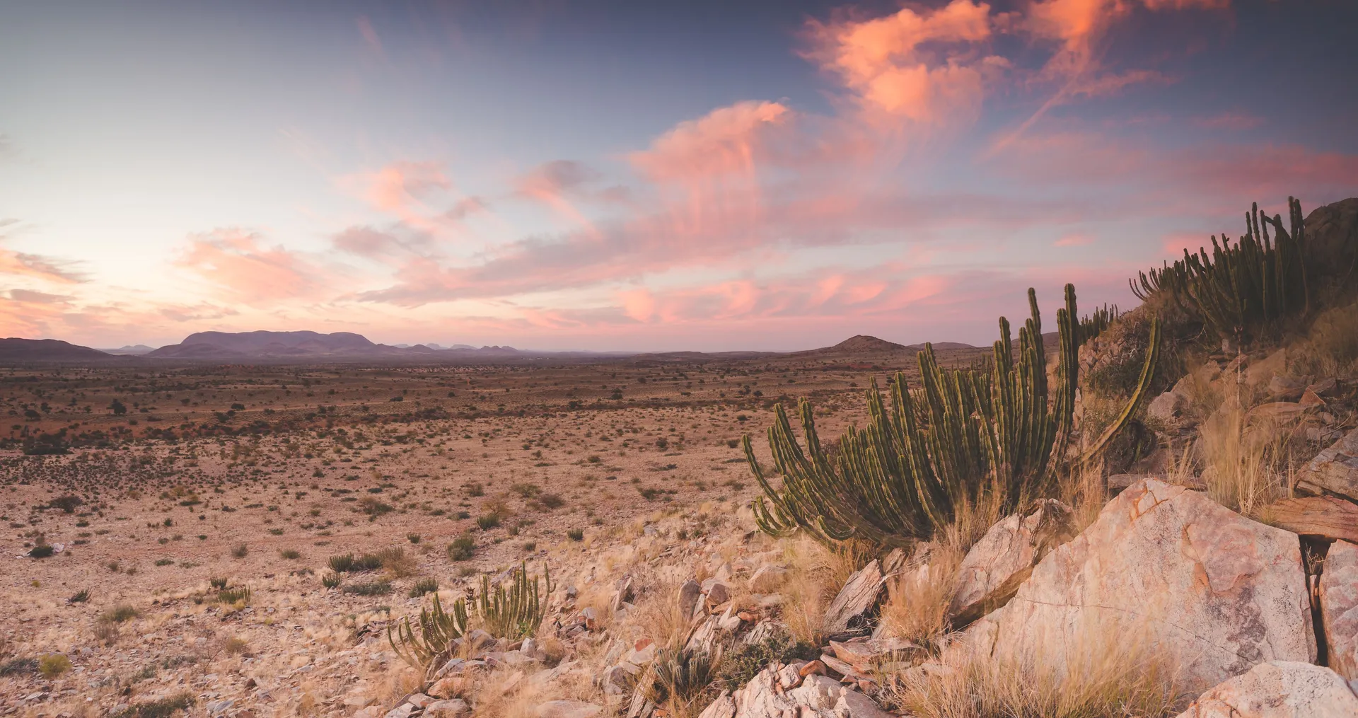 Depart your lodge and journey southwest into the dramatic scenery of Damaraland, a sparsely-populated region between the Brandberg, Namibia’s highest mountain, and Skeleton Coast. As you travel, the landscape becomes increasingly rugged, characterized by volcanic rock formations, dry riverbeds, and wide-open vistas. Arrive at Twyfelfontein Country Lodge in the afternoon to enjoy sunset views over the Aba Huab Valley, followed by dinner.